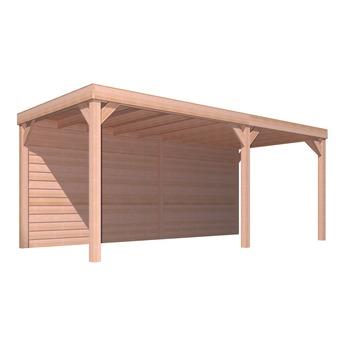 overkapping douglas hout blank met blokhutprofiel achterwand en 2 zijwanden 270x330 cm kopen tuinhuizen karwei