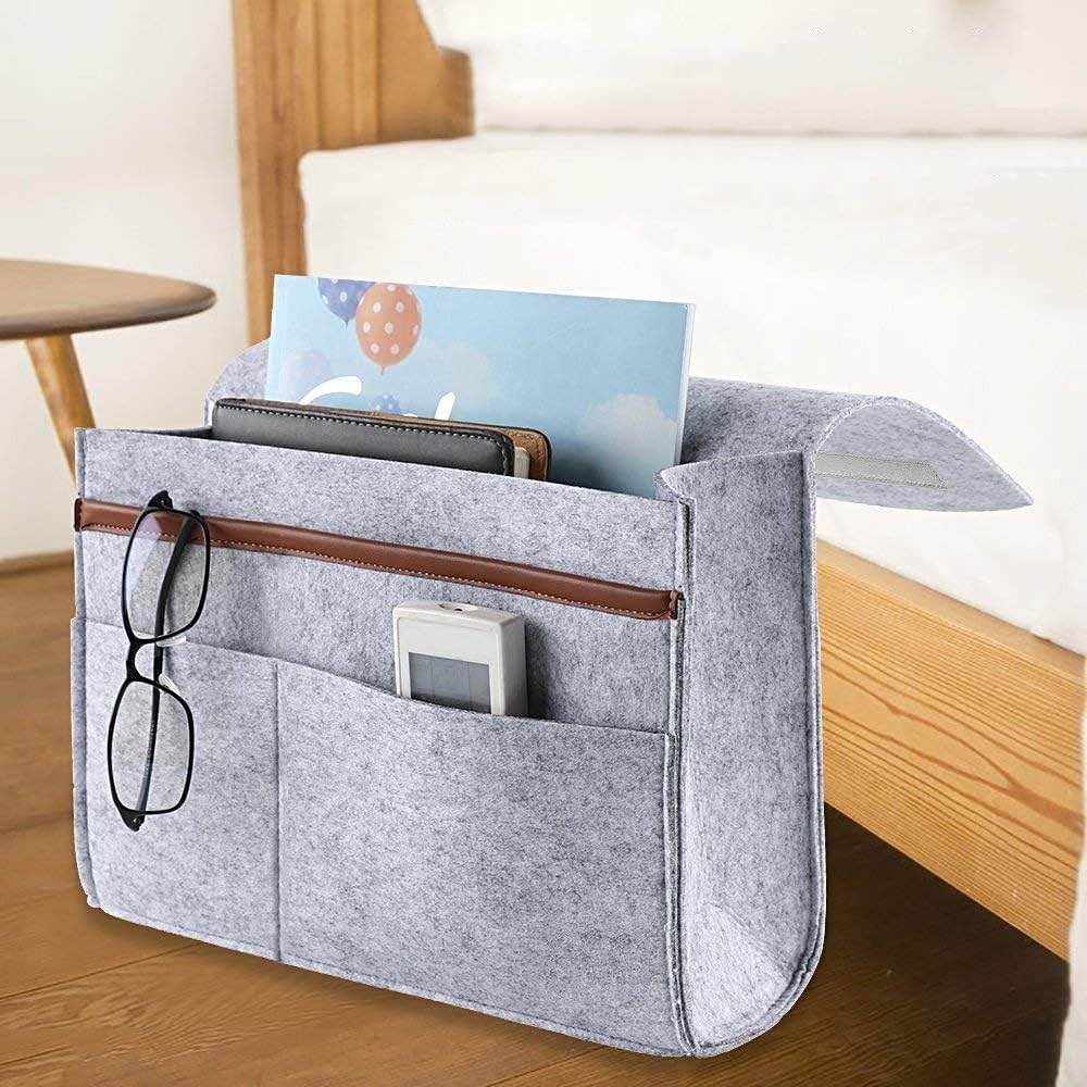 perfect for home bed rails sofa newspaper light grey bunk beds phone hanging bag for tv remote control book laptop bedside storage pocket felt hanging organizer bag with anti slip velcro bedding