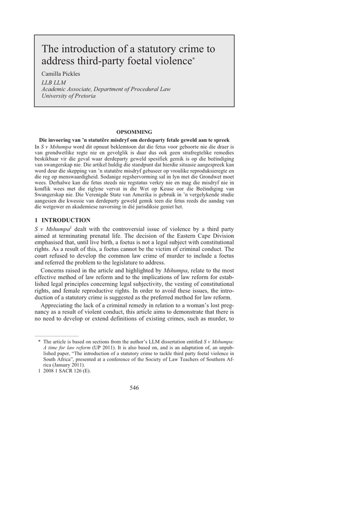 the introduction of a statutory crime to address third party foetal violence manualzz