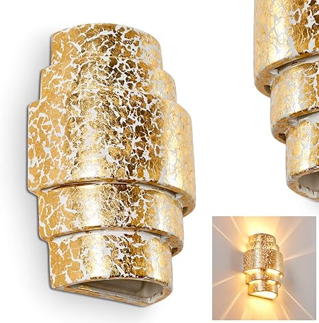 led tafellamp trion aneby e14 fitting rond glans goud keramiek textiel blokker