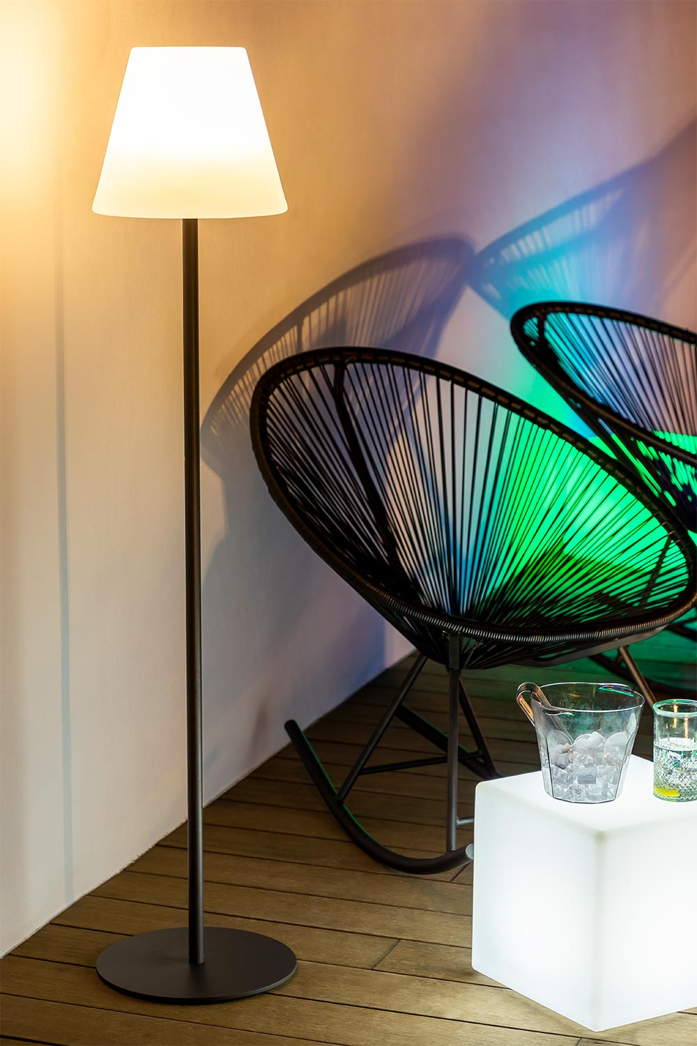 buitenlamp op voet met veranderende led verlichting edison