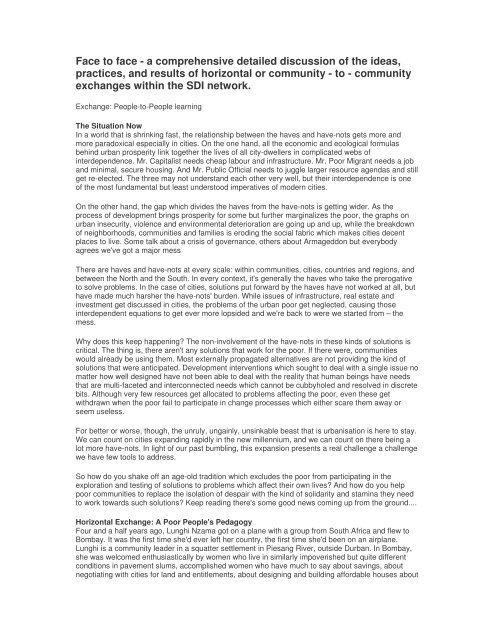 face to face a dialogue on exchanges shack slum dwellers