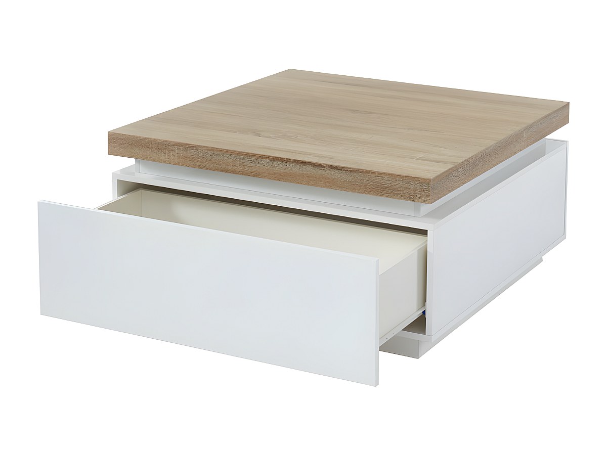 salontafel halo ii 2 lades gelakt mdf met led verlichting wit en eiken