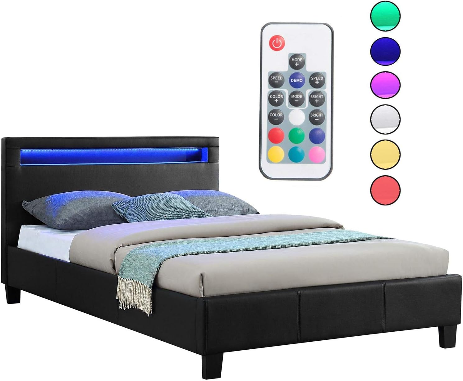 caro mobel mirasol gestoffeerd bed met led verlichting eenpersoonsbed kunstlederen bed zwart 120 x 200 cm inclusief lattenbodem amazon nl wonen keuken