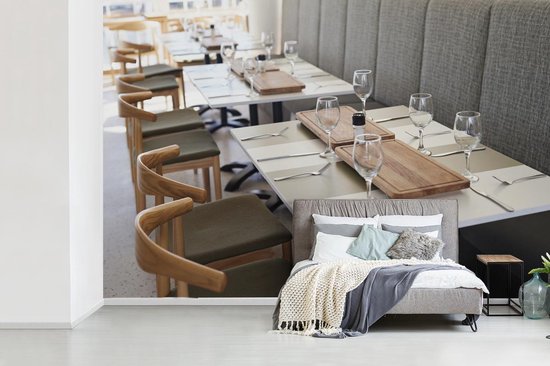 bol com fotobehang restaurant lege glazen op tafels van restaurant fotobehang vinyl
