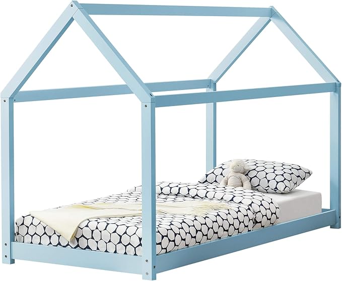 kinderbed houten bed huisbed 90x200 cm blauw amazon nl