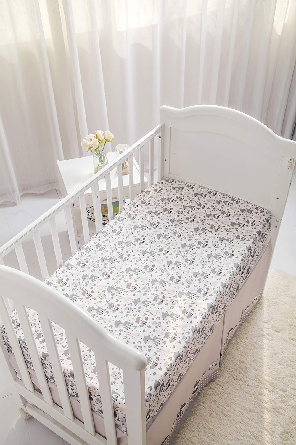 kids home store gray hazel la premura woodland forest baby nursery crib bedding set fox hoglet bunnies 3 piece standard size crib set deer baby bedding