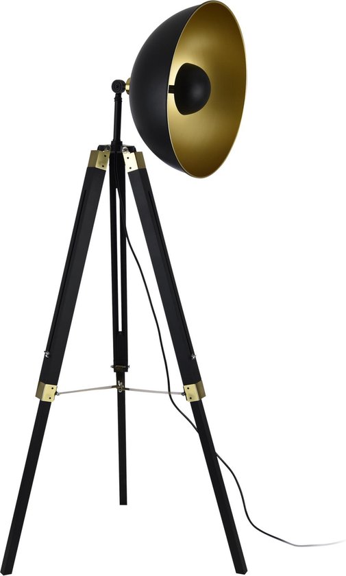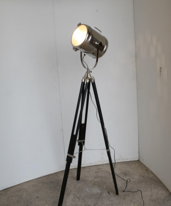 bol com tripod staande lamp zwart houten poten nikkel spothead 180cm max hoogte