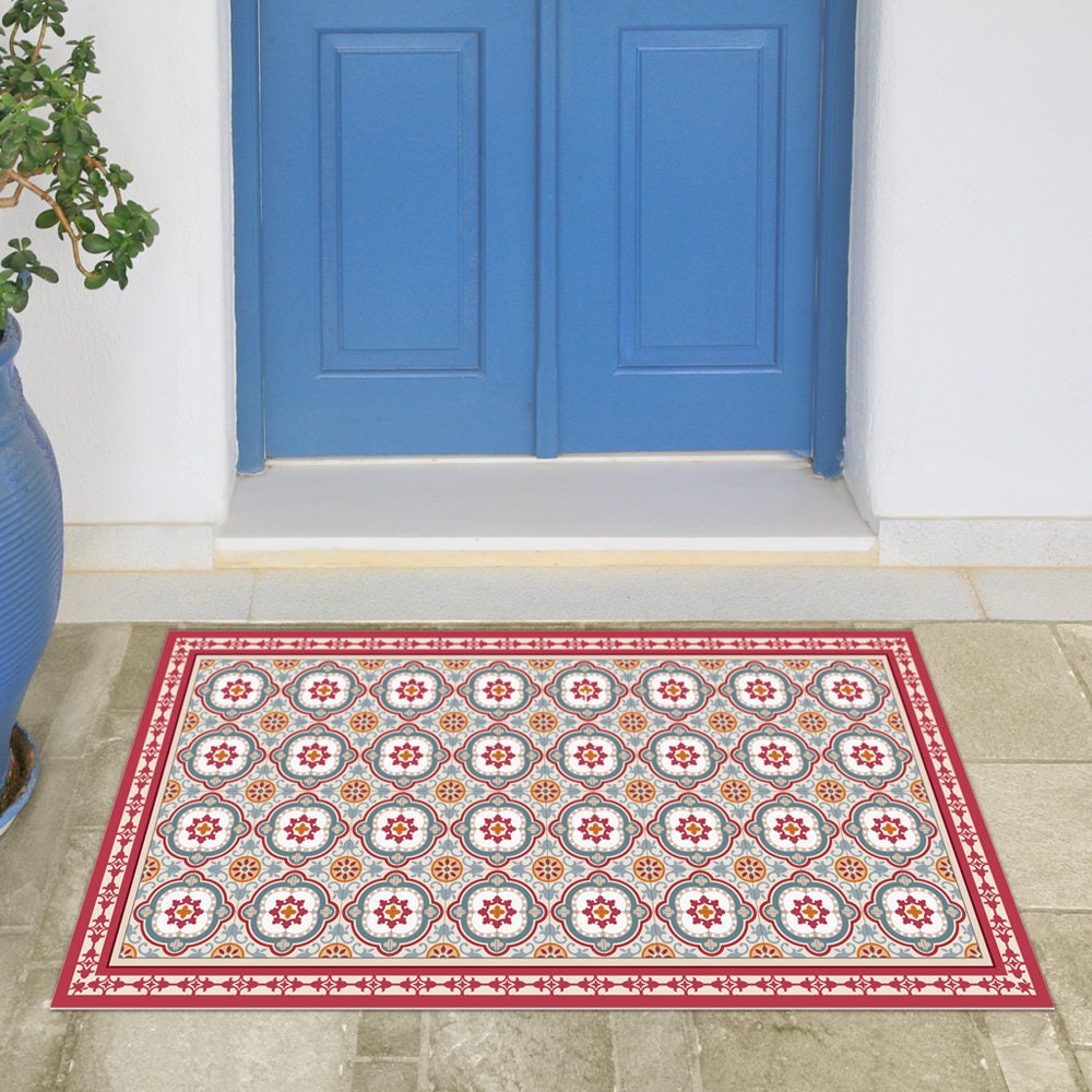 linoleum deurmat met spaanse tegels in rood en blauw vinyl etsy