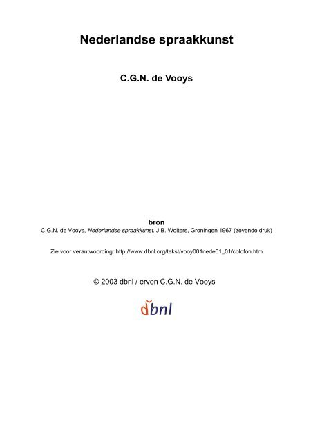 nederlandse spraakkunst cgn de vooys digitale bibliotheek voor