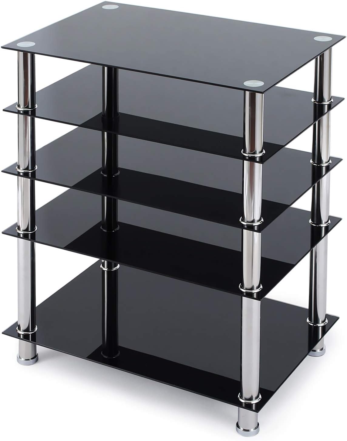 amazon com tavr 5 tier media compontent tv stand audio video tower with black tempered glass shevles for xbox gaming consoles cable boxes hifi stereo equipment top glass 88 lbs capacity black furniture