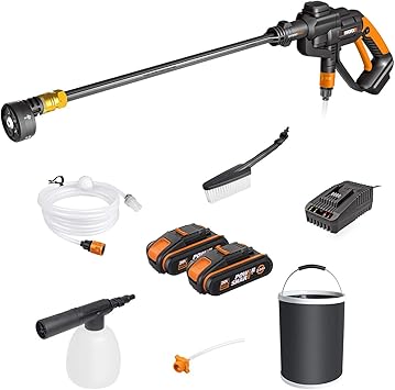 worx 20 v hogedrukreiniger accu wg620e 4 2 0 ah 120 l h reinigingspistool met 6 m slangen en borstel voor auto tuin ruit terras amazon nl tuin terras gazon
